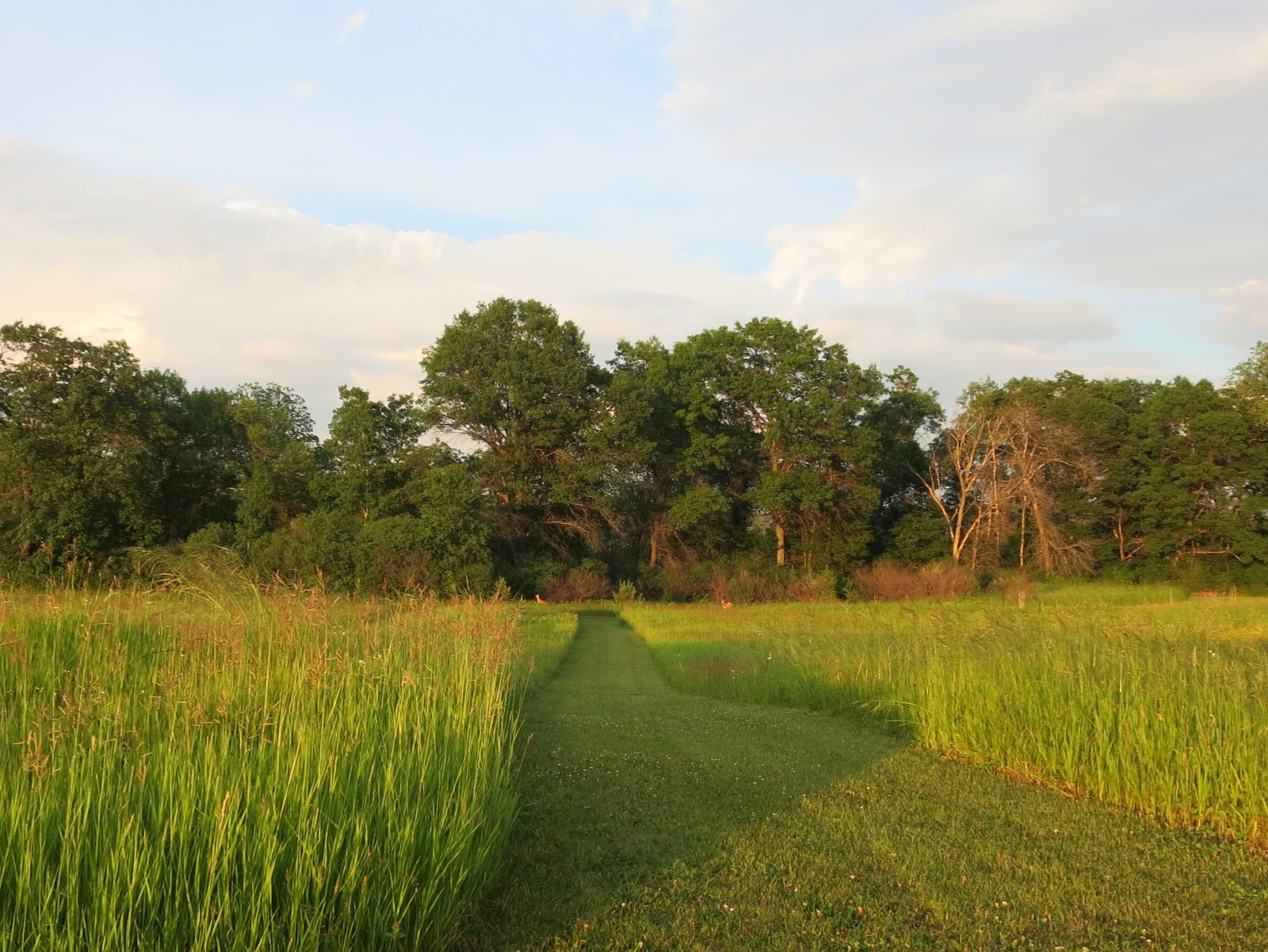 Late in June, a stormy Sunday keeps me off the bike, but in the evening the clouds roll back in time for a quick walk to the prairie restoration project.